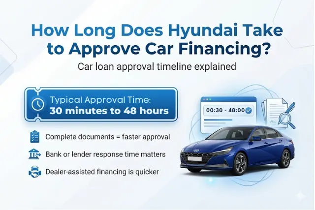However, some situations may arise where it could take as long as 48 hours for your loan to be approved due to verification requirements. Therefore, the time frame for how long does Hyundai take to approve financing a car is based upon the financial situation of the applicant and the speed at which their dealership can process the application.